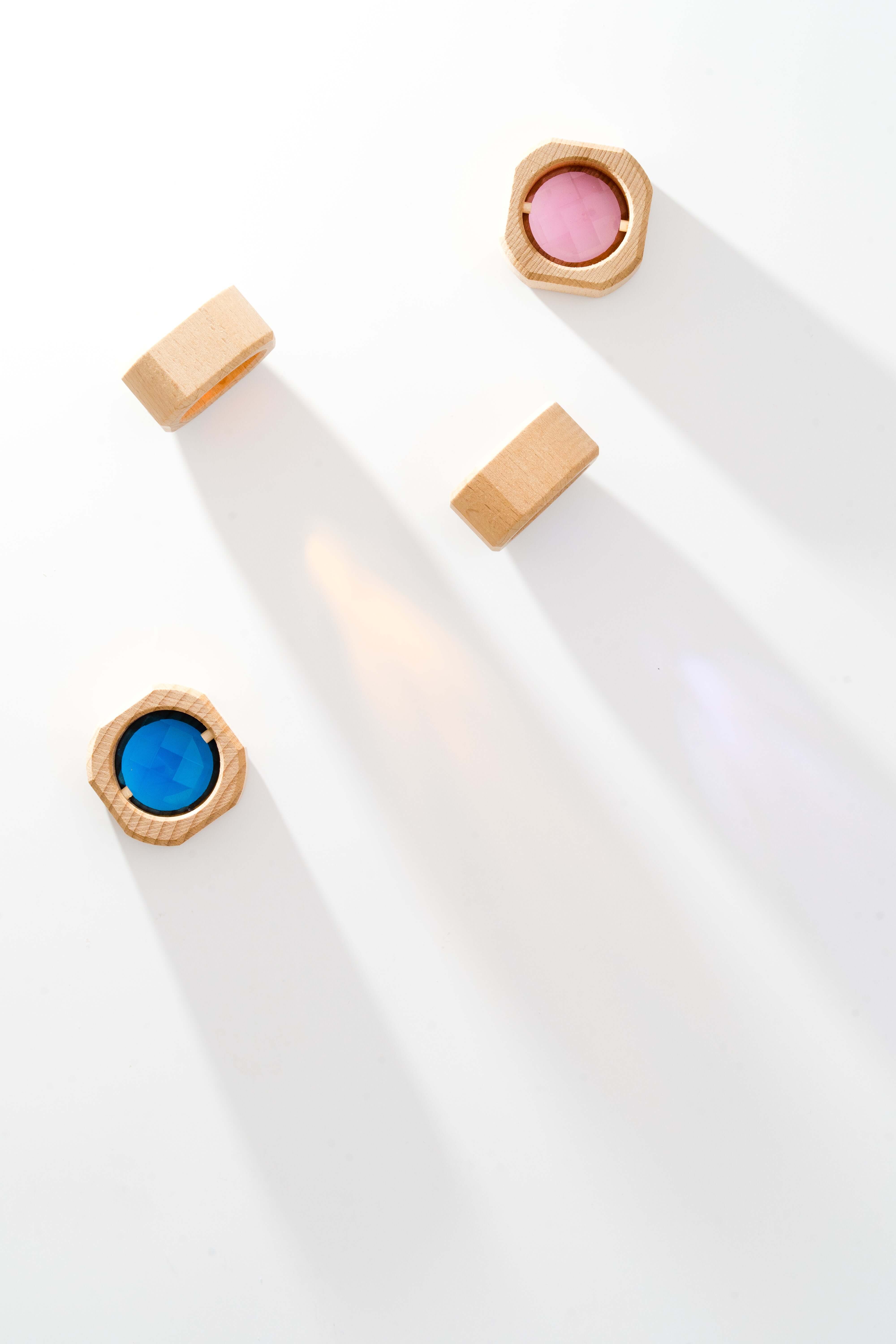 More than beautiful, Lottie Blocks support STEM concepts, cognitive development, and fine motor skills. Children can explore light, color mixing, and symmetry by holding them up to the sun or stacking them into towers that cast shimmering reflections. Their versatile design makes them ideal for open-ended play, loose parts play, and creative storytelling.
