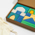 Packaged in a Maison Rue box with canvas bags to keep all the blocks dust free for storage.