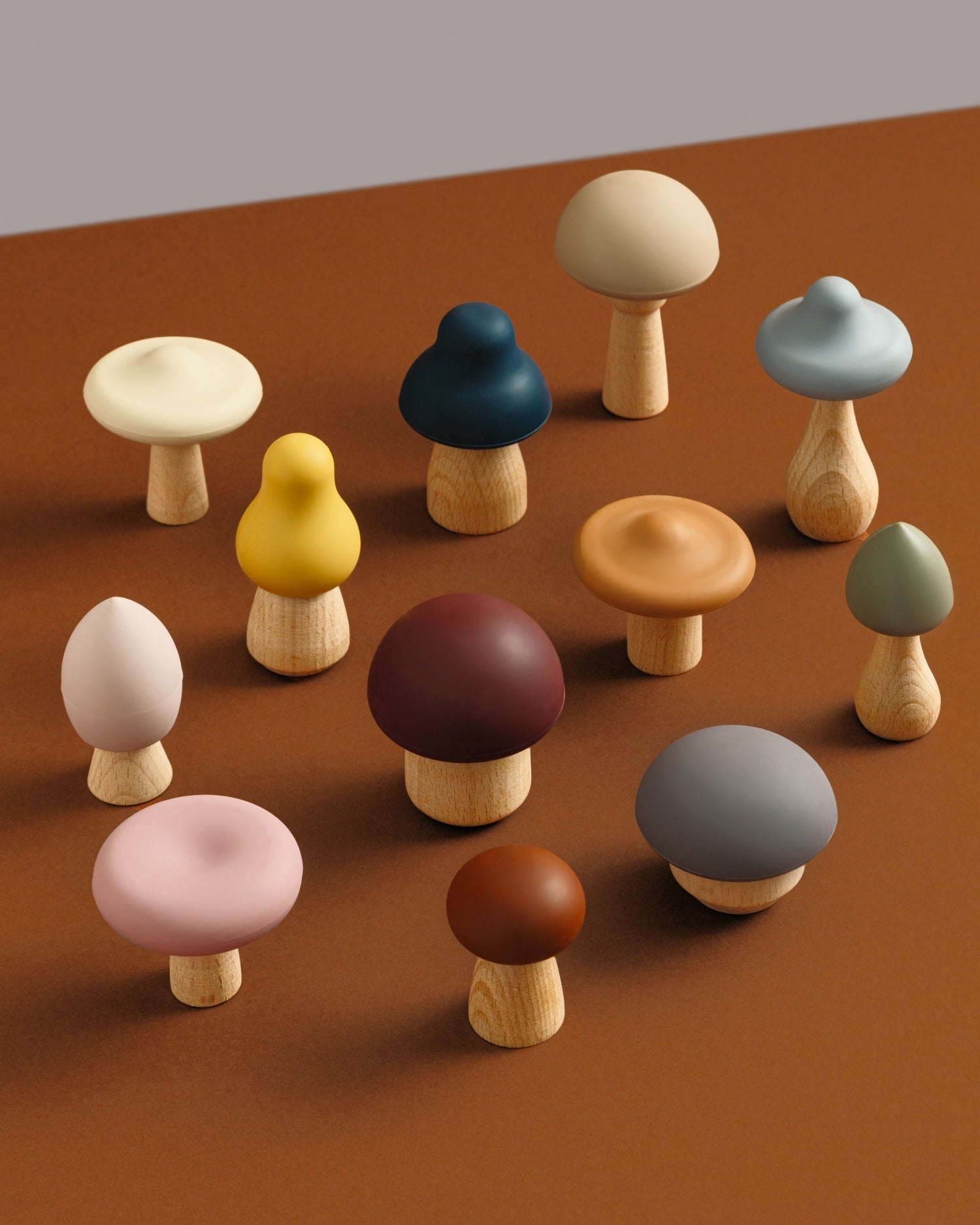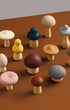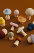 A 12 Piece Shroom set made of 100% food-grade silicone & wood. Detachable silicone tops that can be mixed or matched with various sized wooden stands. Perfect for counting, sorting, improving fine motor skills, language skills, or imaginative play. A versatile toy that evolves with your child and has multiple uses. Suitable for ages 3 and up.