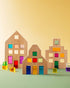 Riley City Building Blocks & Lucent gemstones are a fun and educational toy for children ages 3 and up. These blocks are made from high-quality, durable beech wood and designed to promote cognitive development, fine motor skills, and spatial awareness. The set includes 3 wooden houses, each with a different design and number of rooms, as well as a set of pastel-colored lucite blocks. Children can use the blocks to build or practice counting, sorting, and other basic math and literacy skills. The lucite blocks are easy to stack and hold, and are safe and non-toxic for children to play with. Riley City Building Blocks are a great way to encourage creativity and imagination, and are sure to become a favorite toy for children and parents alike. This toy set encourages open-ended play, which is essential for child development. The possibilities for play are endless, making this toy set a great investment for any child. They help children develop hand-eye coordination. They also help children develop critical thinking and problem-solving skills as they work to stack structures or place the lucite pieces into the openings like a puzzle. Suitable for children ages 3 and up and can be used in a variety of settings, including homes, schools, and daycare centers.