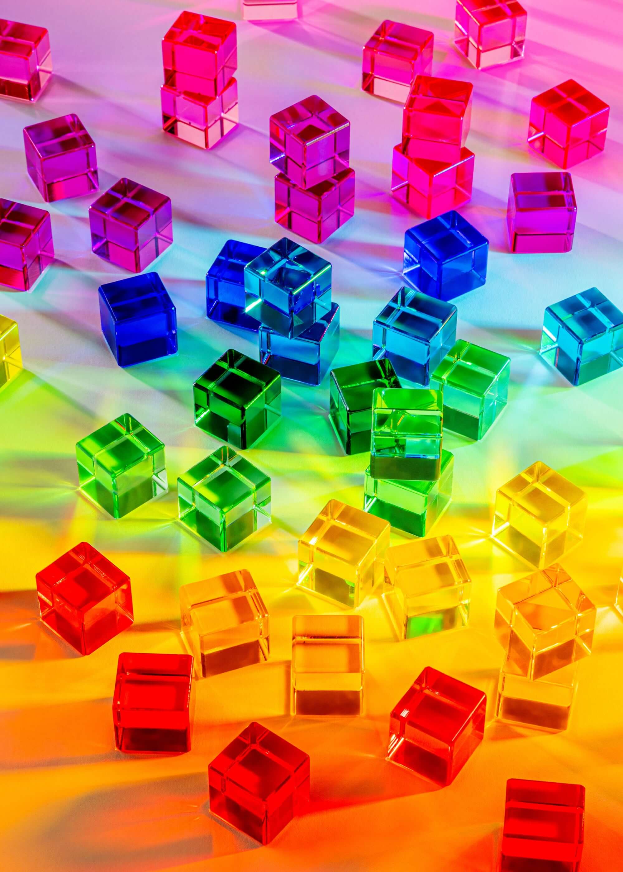 - Set of 100 rainbow acrylic cubes