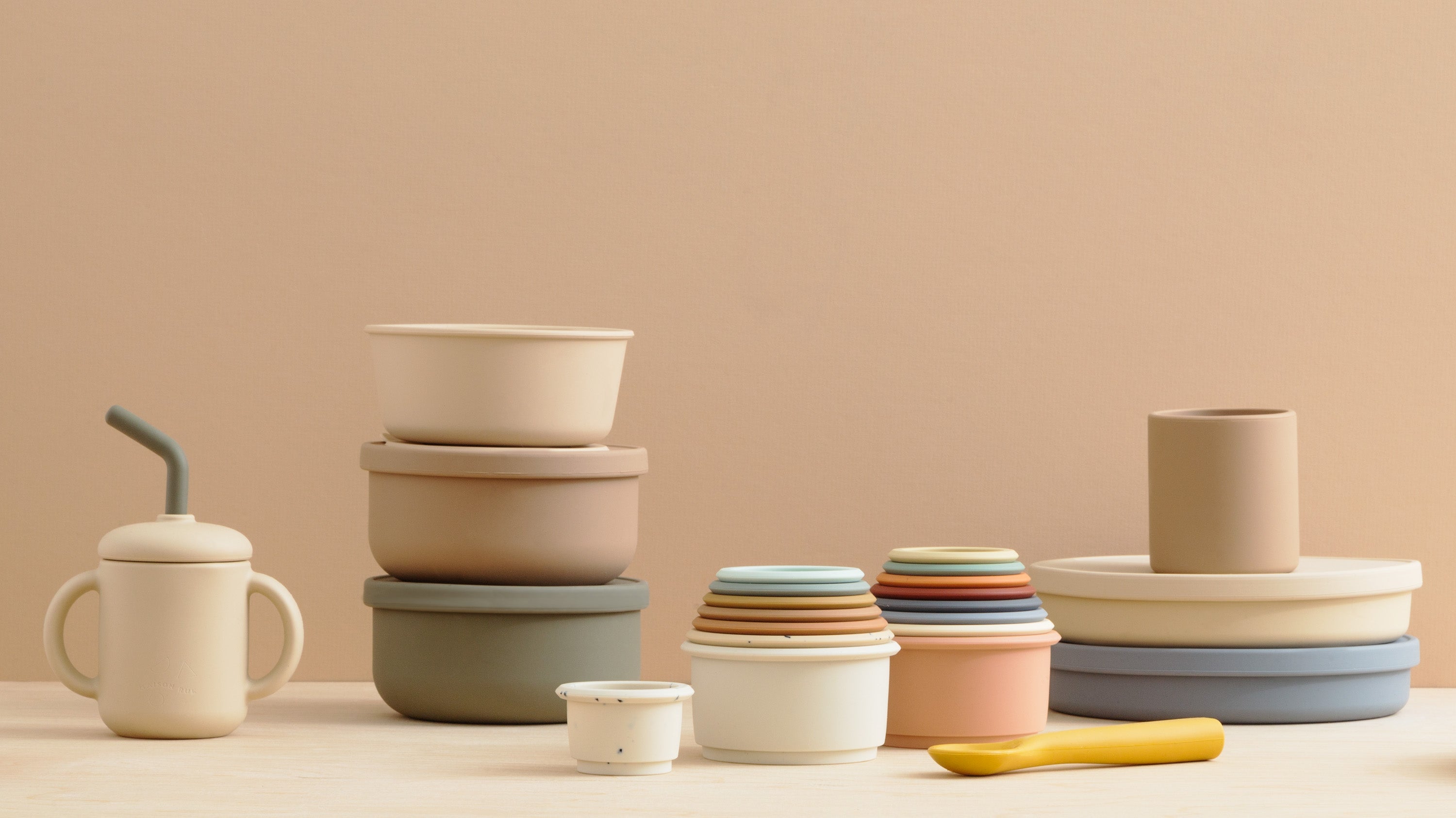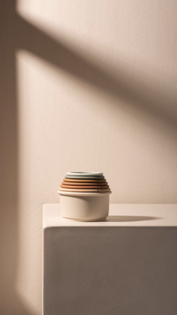 Chosen for both function and aesthetics, our silicone pieces feature a refined color palette and minimal forms that blend seamlessly into your home. Practical, beautiful, and built to last, they’re designed to support early development while keeping everyday routines feeling calm and intentional.