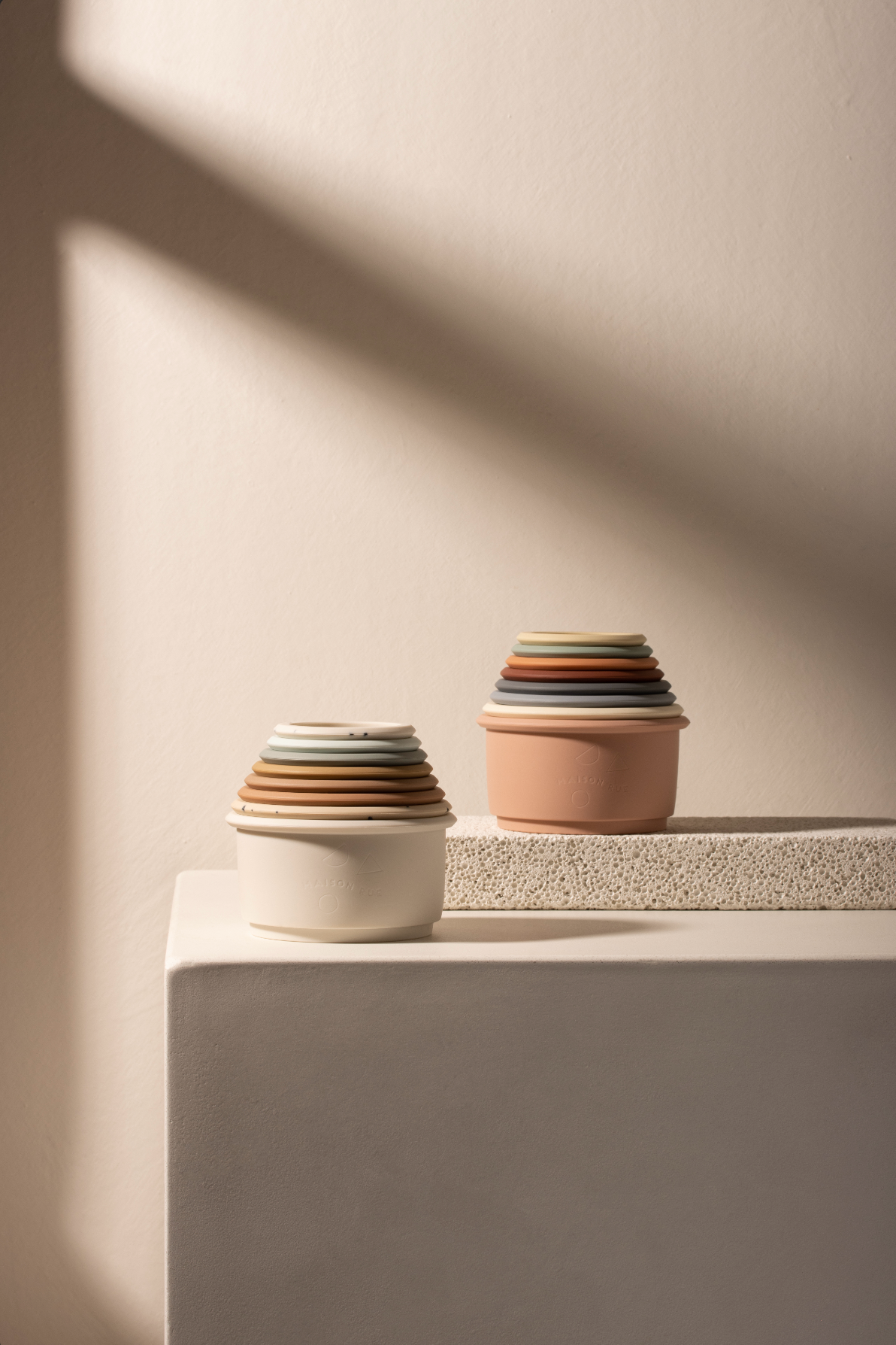 Our silicone pieces are designed to live beautifully in your home and in your child’s hands. Crafted from soft, food-grade silicone, each item naturally invites squeezing, stacking and exploring.